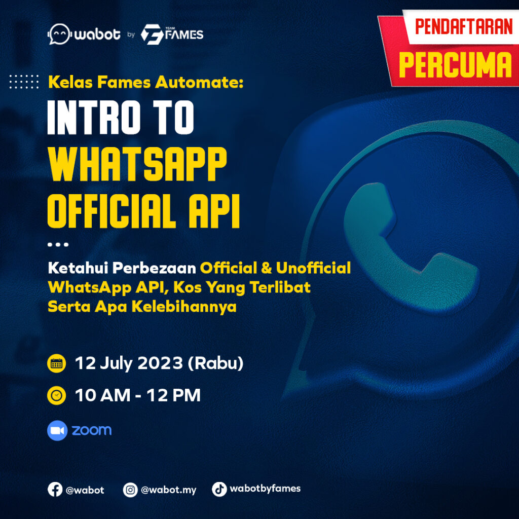 Dapatkan semua jawapan bagi persoalan anda dalam Kelas Intro to WhatsApp Business API bersama Team Fames
